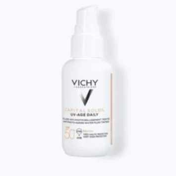 La Crème Solaire Teintée UV-Age Daily SPF50+ Vichy combine protection solaire à large spectre, eau thermale de Vichy et pigments naturels pour protéger la peau contre les rayons UVA/UVB tout en offrant un teint uniforme et lumineux. Elle prévient le vieillissement cutané et maintient l’hydratation de la peau.